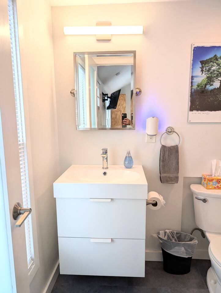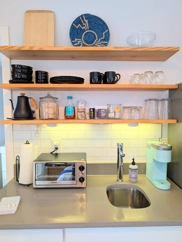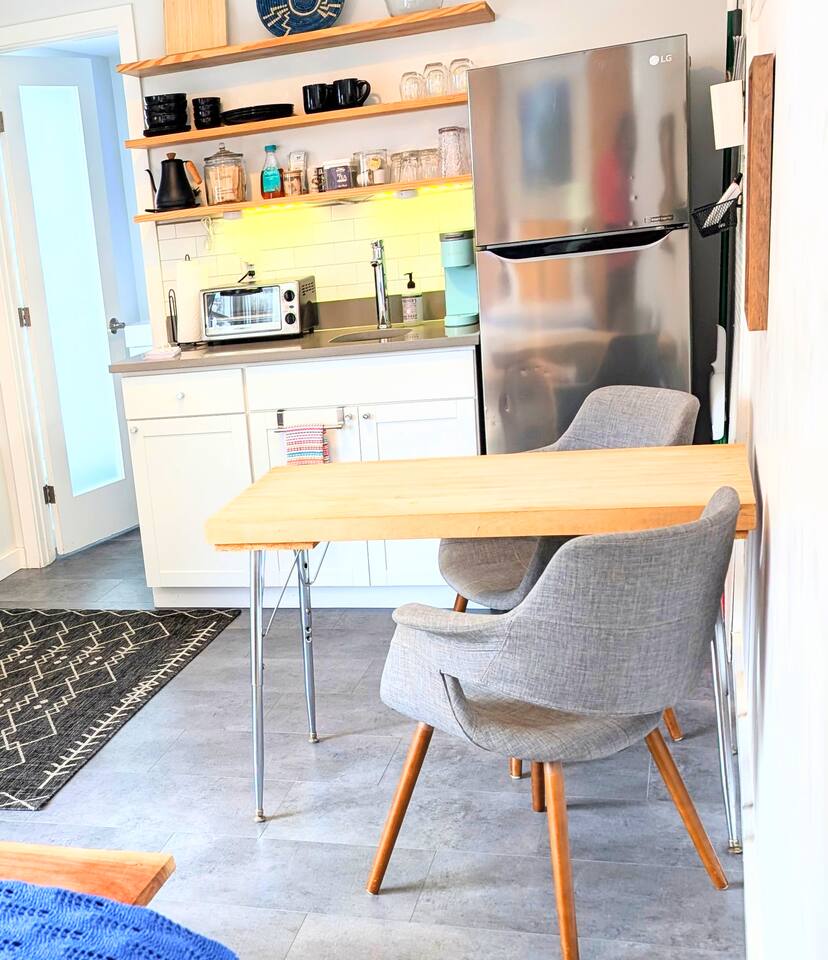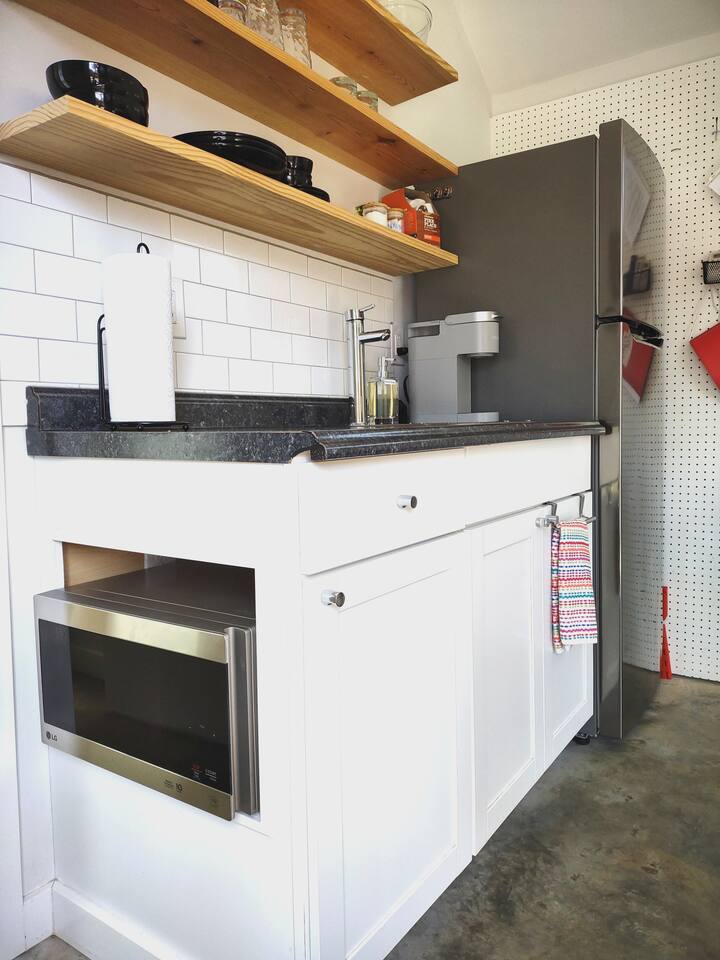 Modern tiny house located in the heart of the city. Restaurants, coffee shops, bakeries, breweries, museums, & parks are all just blocks away! Kitchenette with microwave, coffee maker, sink and full size fridge. Be our guest!