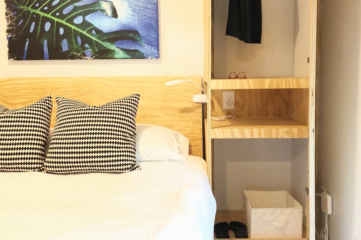I love creating interesting spaces. This comfortable back yard retreat was previously a utility shed in it's former life. I raised the ceiling up to the roof to give the room a vertical, open feeling. Raw industrial materials like metal and plywood were used for the fixtures, floor and furniture. The space was influenced by modern design and inspired by the blue city in Morocco, Chefchaouen. I hope you will find the Best Tiny House in Town to be a serene resting place in the heart of the city.