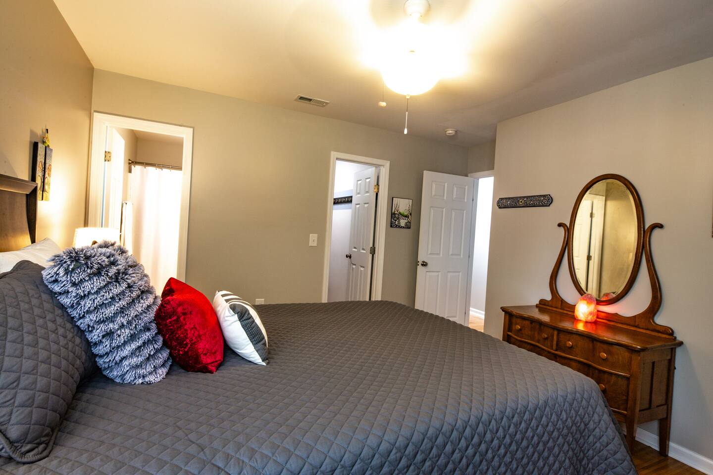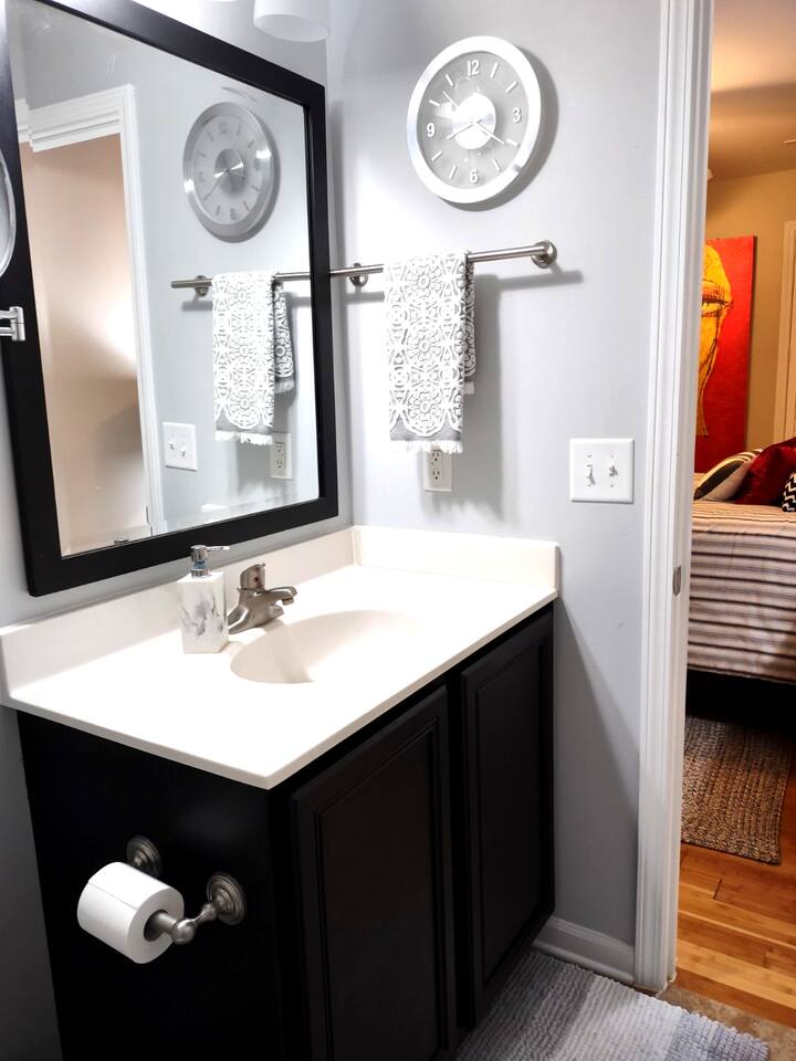 The bathroom for the other Airbnb unit is on the other side of the bedroom wall and plumbing/water can be heard if someone showers or uses the toilet. This is disclosed as it may disturb some potential guests. There is ONE thermostat for both Airbnb units that can be adjusted in this unit. I ask that the temperature be kept around 74 in the summer and 70 in the winter to please both sets of guests. I can adjust it remotely as well and will do my best adjust the temperature to the liking of both guests. There are ceiling fans as well. There is a door between the two units that stays bolted at all times. License Number: ZSTR-000322-2025