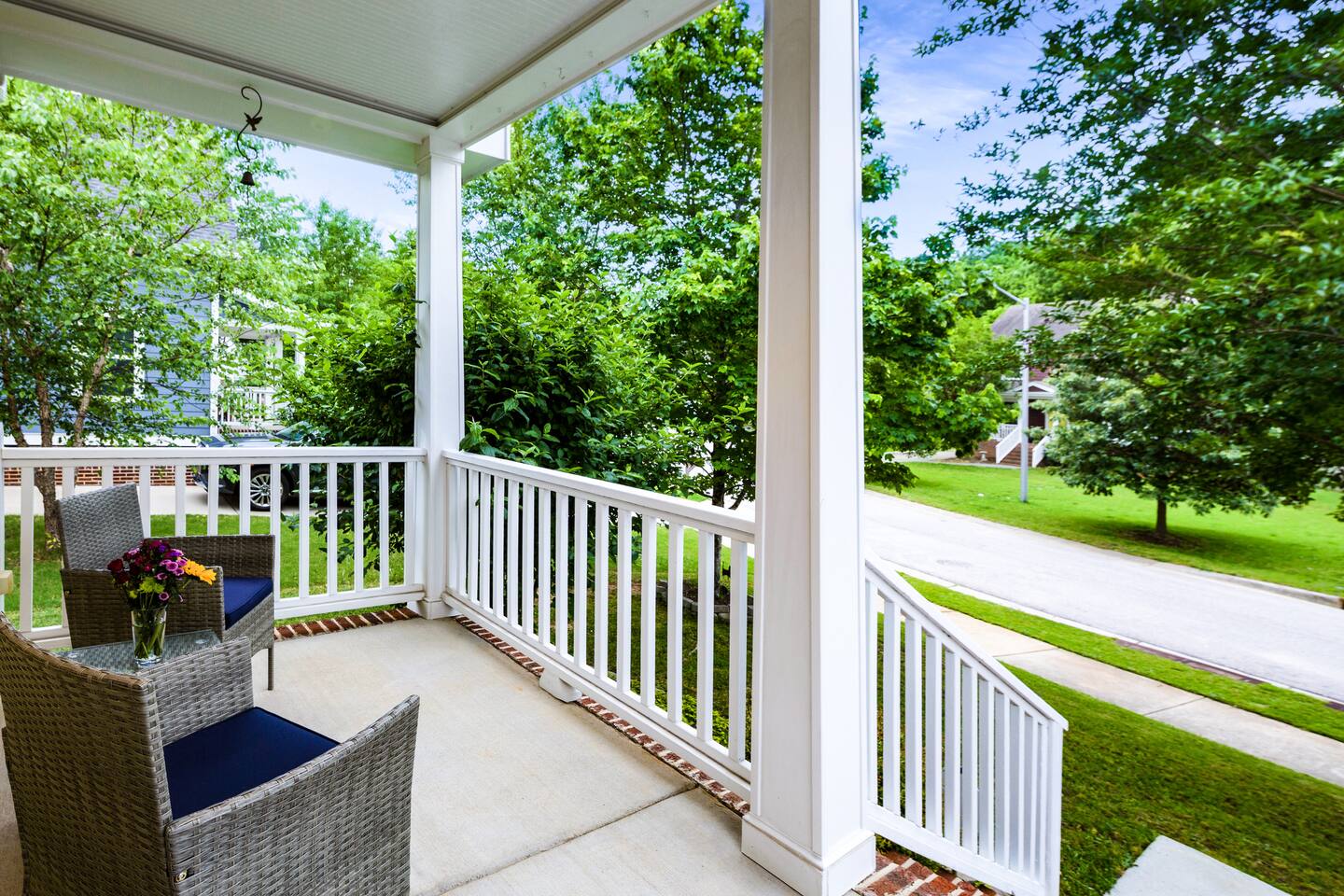 The perfect spot to come "home" to after exploring Raleigh. Vaulted ceiling in the living room, fully stocked kitchen, two-person table for meals or work, brand new organic comfy queen mattress, and laundry facilities. Enjoy coffee or a glass of wine on the front porch. Close to downtown restaurants, bars, coffee shops, breweries, entertainment venues, museums, and shops! Level two charging station for EV cars!