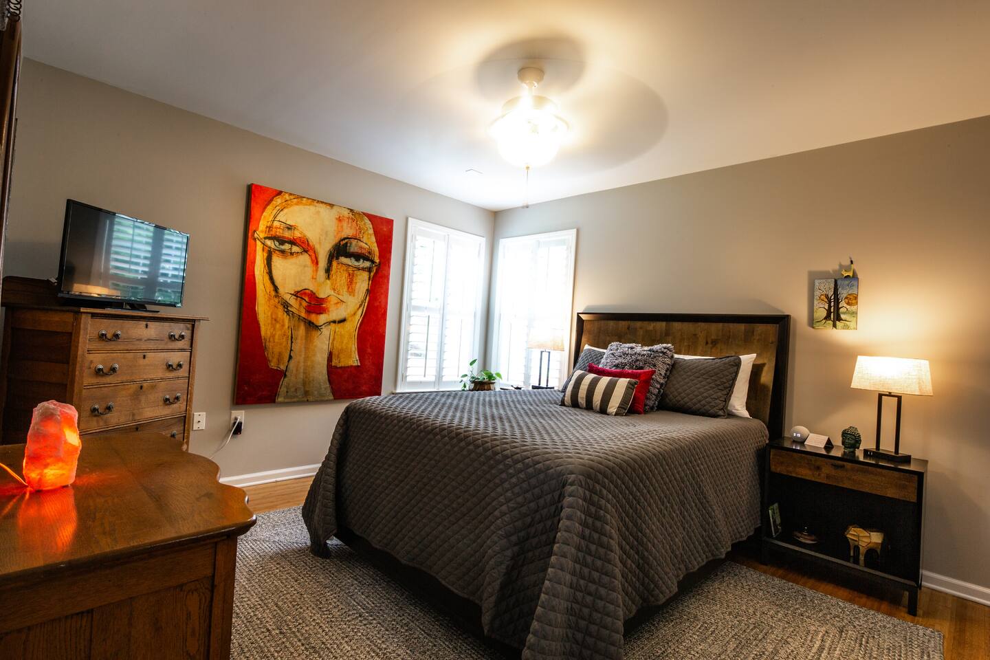 Both bedrooms feature ultra‑comfortable Avocado mattresses for a great night’s sleep. A fully stocked kitchen — plus an additional kitchenette — gives you plenty of flexibility for meals. Three TVs, cozy living spaces, and fun artwork to delight! A washer/dryer are available for your convenience. Start your morning on the welcoming front porch or wind down on the peaceful back deck. Level 2 EV charger for your convenience.